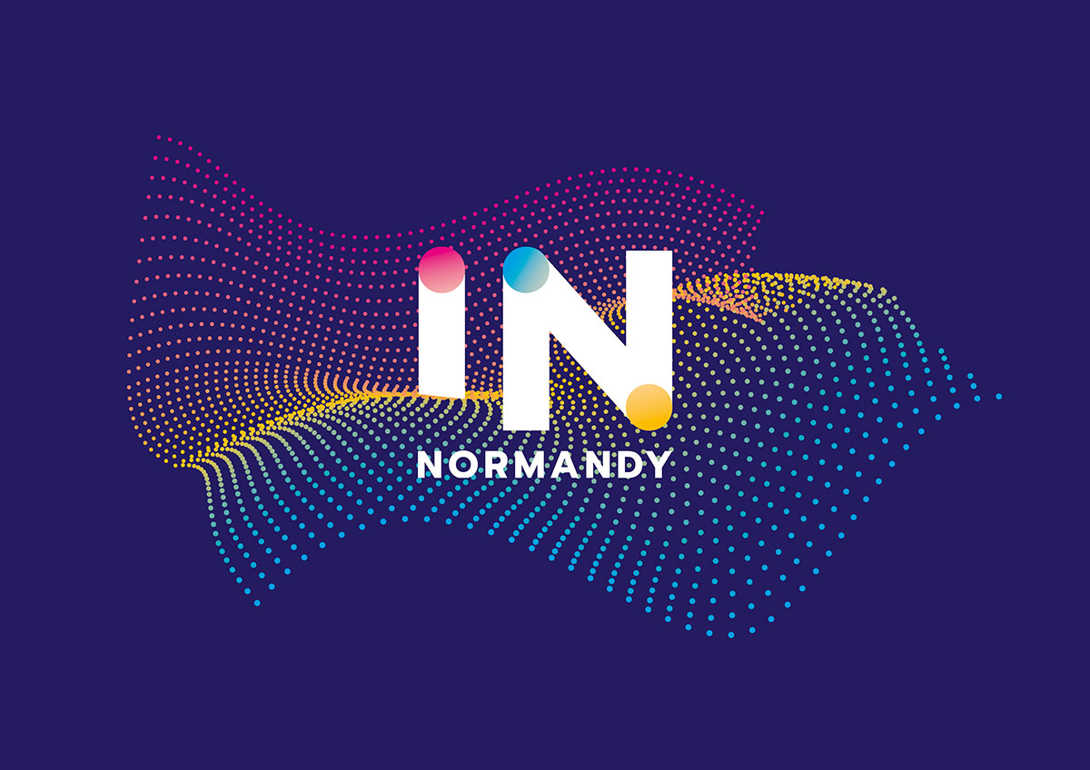 Afin de lancer la promotion d’un rendez-vous B2B consacré à l’innovation et au numérique, la CCI Normandie m'a confié la création d’un univers graphique original, innovant et non figuratif, associé à une proposition de naming. Fondé sur l’expérience client, cet événement propose aux entreprises de la région une véritable immersion dans le monde de demain, sous la forme d’un village thématique. Le nom s'est porté sur un acronyme simple, facile à prononcer et à retenir, IN Normandy (pour : « Innovation Numérique en Normandie »). L’appellation en deux lettres évoque les suffixes de « login » et « plugin », notamment, qui suggèrent l’adhésion et la connexion. Mais elle fait aussi penser aux dernières syllabes de l’expression «Made in Normandy». En outre, ce « in » issu du latin « dans » suggère que l’événement se place résolument « dans » un mouvement général que nul ne peut ignorer et qu’ainsi, il appartient pleinement à son époque. Pour la création du logo, les lettres I et N, valorisées par une typographie sans empattement, sont adoucies et mises en lumière par des cercles de couleurs primaires évoquant des curseurs mobiles ou le halo d’un rayon lumineux au fil duquel transite une information à grande vitesse. Quand à l'univers graphique d'accompagnement, un nuage de points colorés en mouvement symbolise la dématérialisation des données : ce «cloud» qui représente un enjeu considérable pour les entreprises.